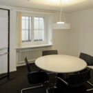 Durch die Ergänzung der Firma mit den Abteilungen Bewertung und Vermarktung mussten für die neuen Mitarbeiter weitere Büroräumlichkeiten zur Verfügung gestellt und die bestehenden angepasst werden. Durch den Wegzug einer Mieterin konnten deren Büros zu den vorhandenen geschlagen werden. Die Renovation dieser Räume, deren Möblierung und Ausrüstung mit EDV inkl. Vernetzung musste innert kürzester Frist abgewickelt werden. Die neue Grösse der Firma erforderte aber auch organisatorische Anpassungen und eine Angleichung des Zustandes der bestehenden Räume. So wurden ein Empfangsbereich gestaltet, ein kleines zentrales Sitzungszimmer erstellt, ein Aufenthaltsraum eingerichtet und die WCs renoviert. Bei dieser Gelegenheit wurde die gesamte ICT inkl. Server ersetzt und auf den neusten Stand gebracht. Damit die Besucher zum Empfang finden, wurden Korridor und Treppenhaus mit einfachen Orientierungshilfen bestückt. Nach dem Umbau entsprechen die Räume nun der neuen Grösse der Firma und repräsentieren deren neuen Geist.